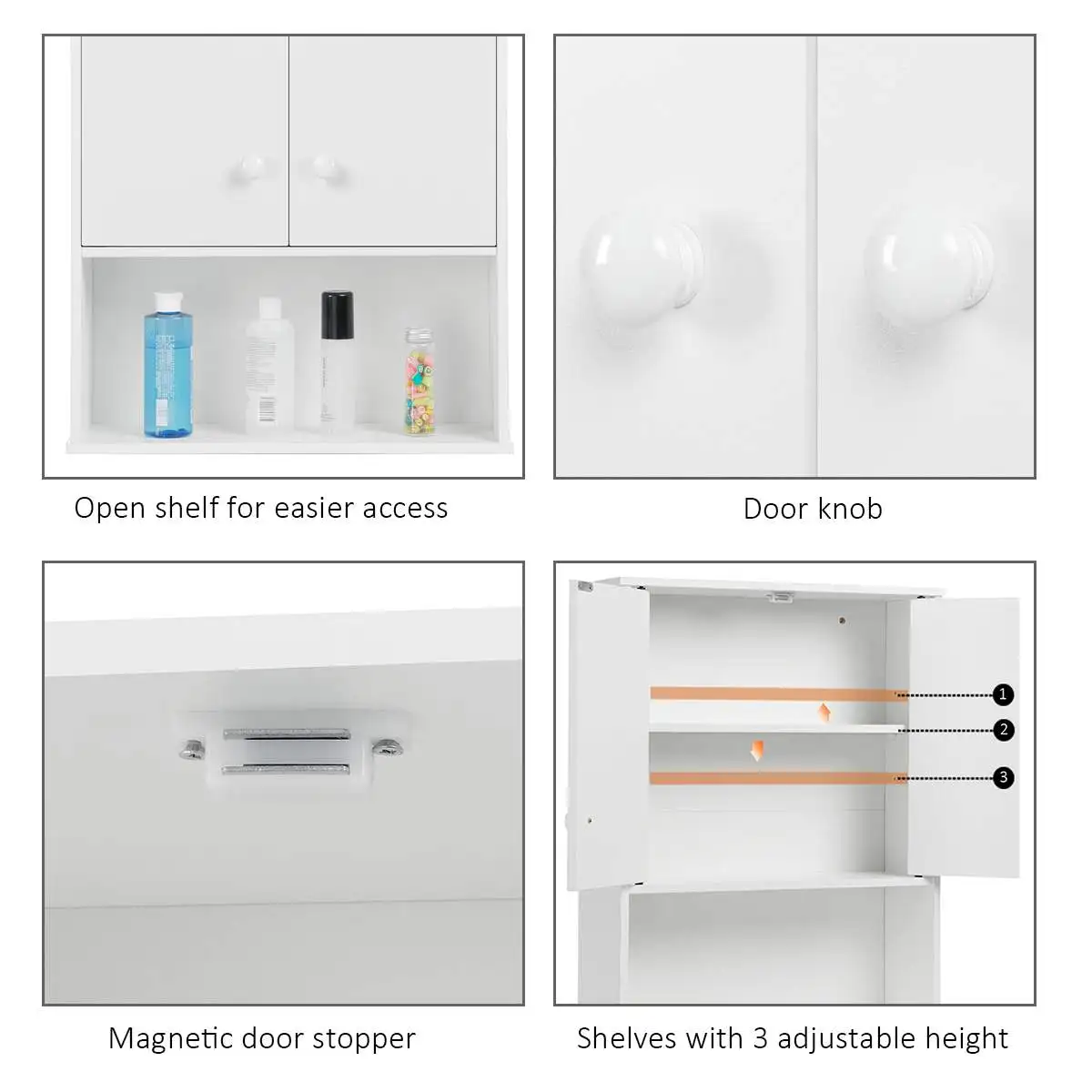 ● Large Capacity & Space saving: Offers you an abundance of storage space, provides space for your towels, cleaning products and other bath accessories.