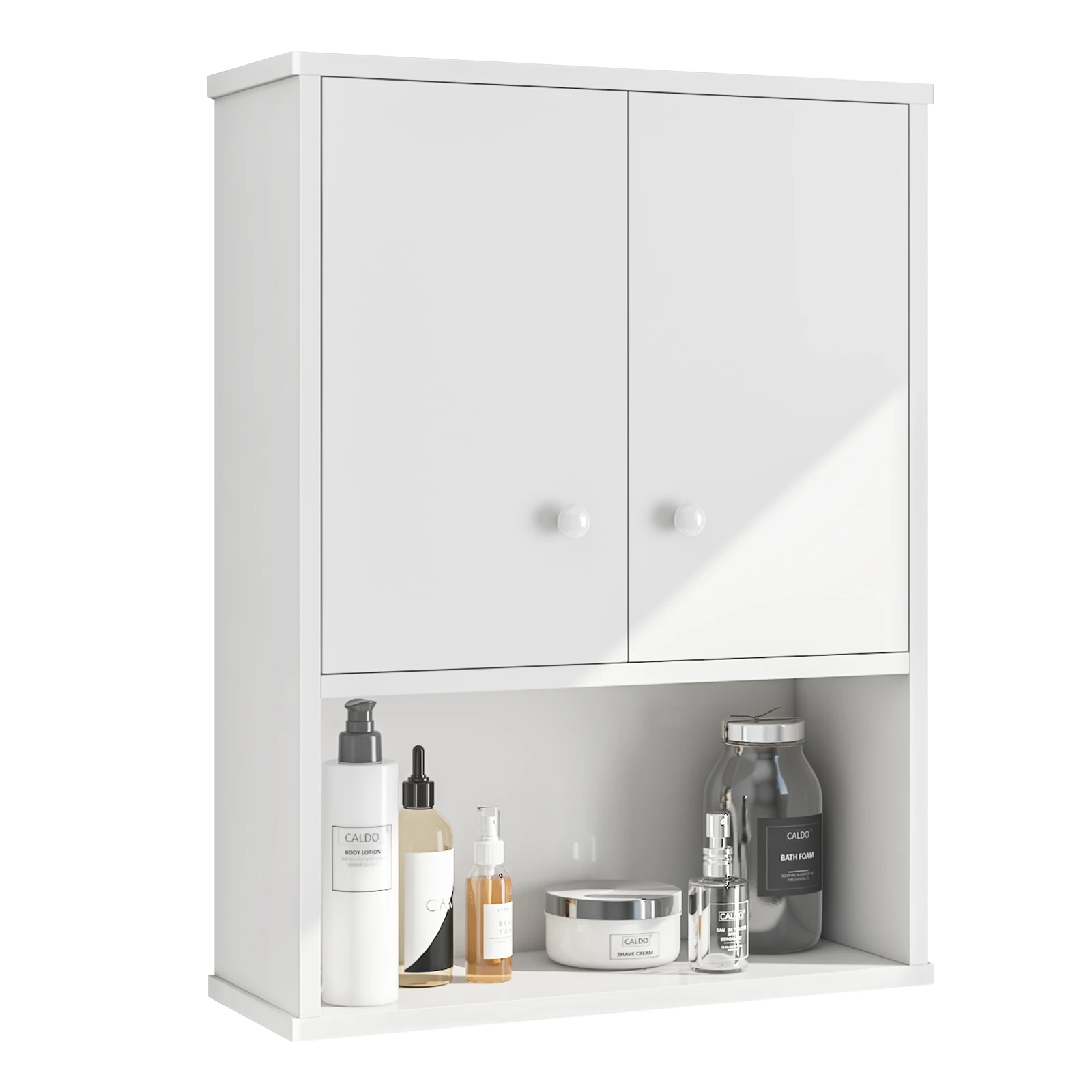 ● An open shelf and two storage compartments with two half-doors, offering large storage space